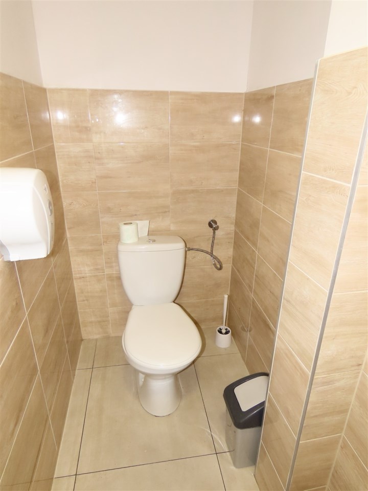 Ostatni najemca prowadził tu przedszkole. W oryginale lokal stanowił jedną otwartą przestrzeń z zapleczem socjalny. W tej chwili wydzielone są dwie większe sale, jedno pomieszczenie biurowe, sporo sanitariatów i zaplecze z aneksem kuchennym.