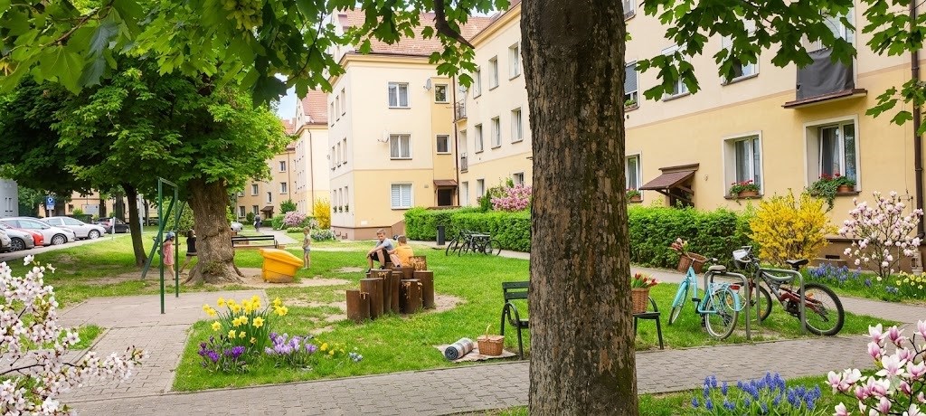 Zieleń: Starannie zagospodarowane podwórka i bliskość parków.