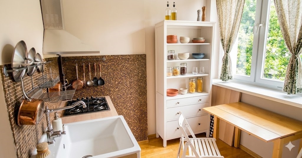 Rozkładowy układ: Funkcjonalne 48,42 m², gdzie każde pomieszczenie (2 pokoje, duża kuchnia, łazienka) posiada niezależne wejście z przedpokoju.